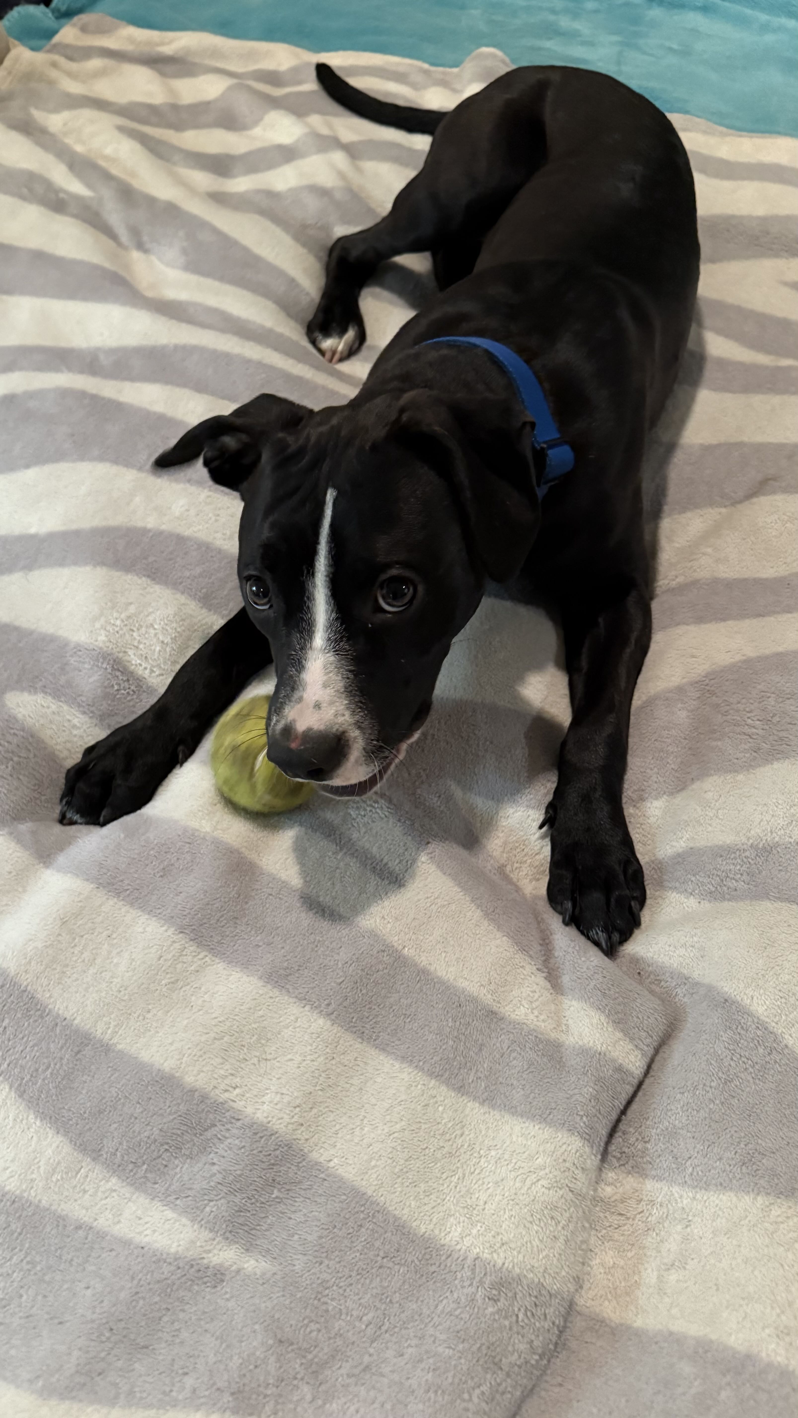 Still very much a puppy at around 10–12 months, Poppy is young, smart, and eager to learn; her name recall is excellent and she picks up new cues and tricks quickly. She's crate-trained, and her foster has seen big progress with housetraining—she does best with a consistent routine and a patient person who keeps things steady so she can keep improving.