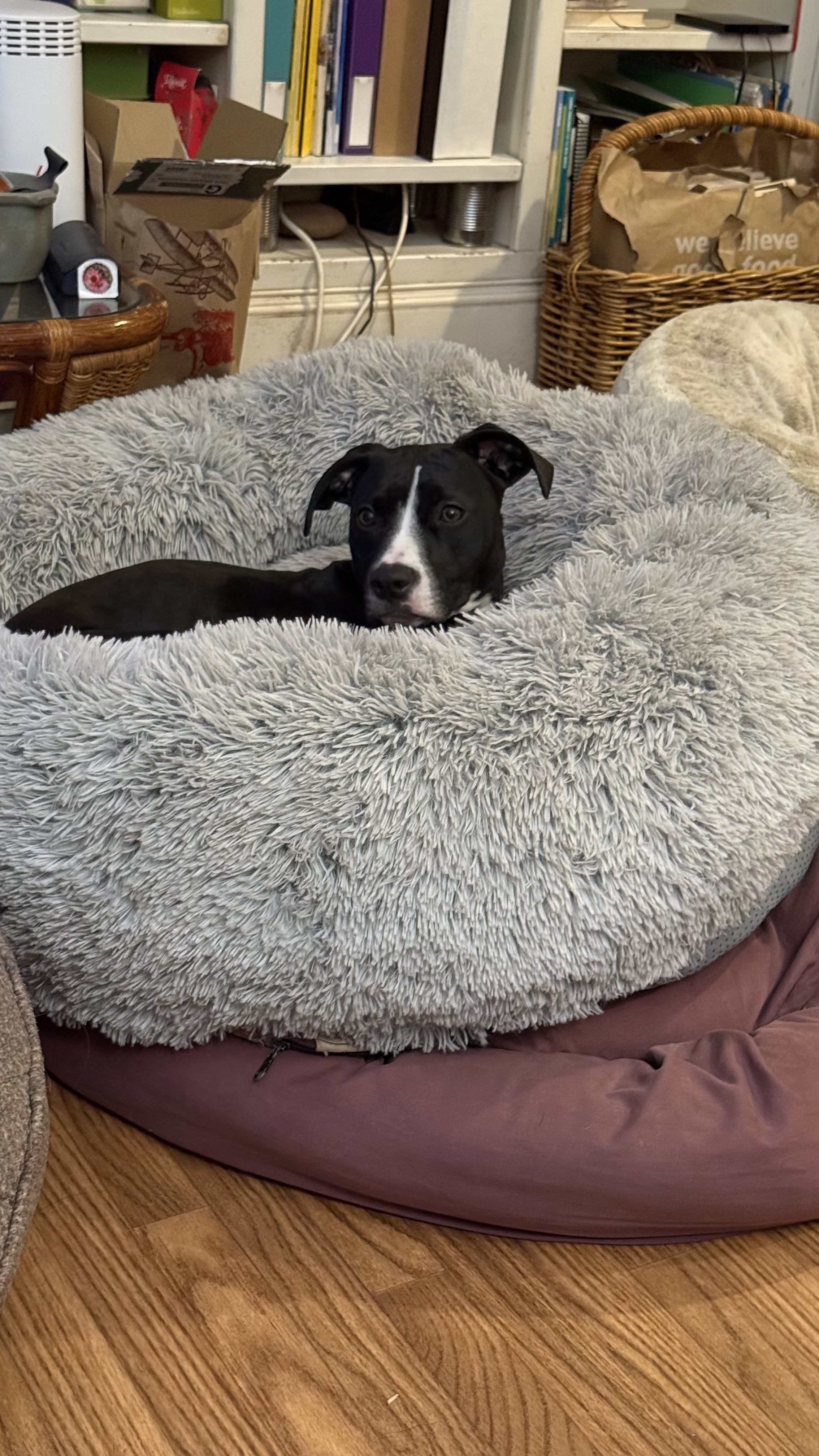 Poppy is a heart-stealer from the moment you meet her—a sweet, absolutely adorable Staffordshire Terrier mix with boundless energy. She's loyal, loving, and always ready for whatever you're up for, whether that's a run, a play session, or a movie-night cuddle on the couch.