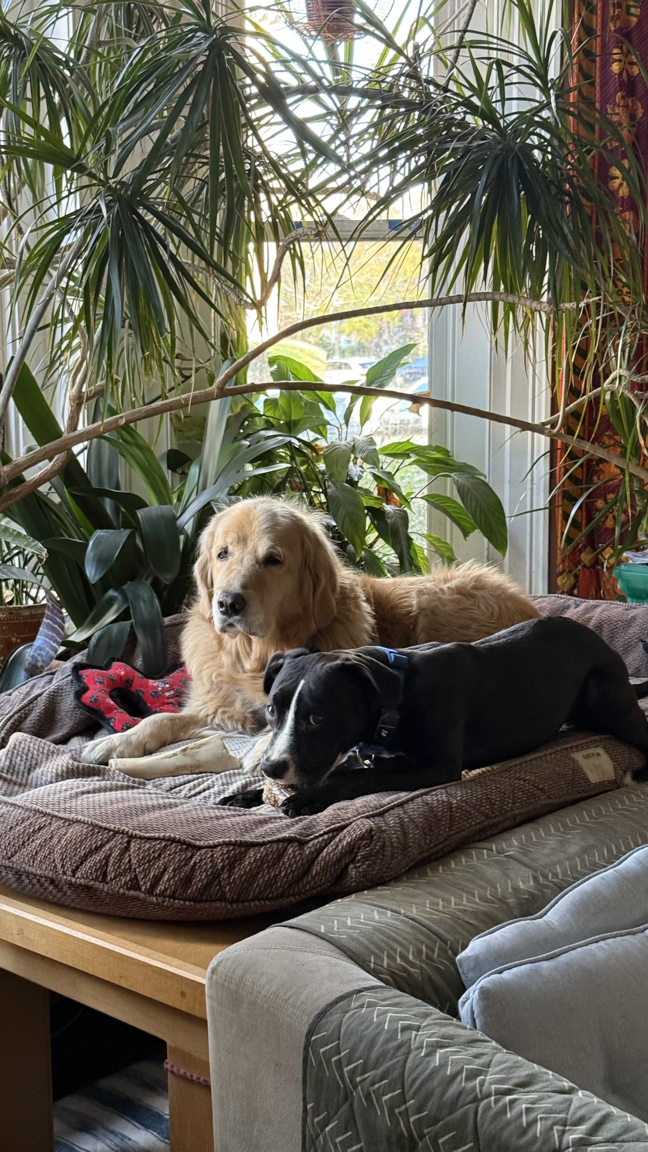 Poppy has an "off switch" and loves to sleep in, but she is her best self when she gets her steps in. She is the perfect match for someone who wants a reason to get outside, knowing a serious cuddle session awaits when you get home.